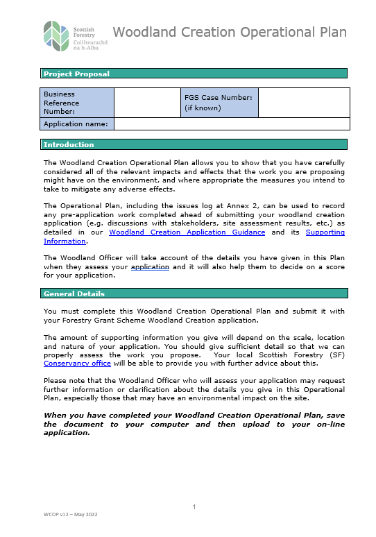 The Operational Plan, including the issues log at Annex 2, can be used to record any pre-application work completed ahead of submitting your woodland creation application.